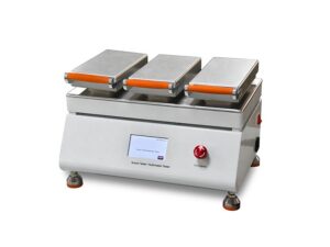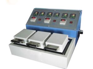 To determine color fastness to hot pressing and dry heat and to conduct sublimation tests. Providing controlled conditions of dry heat and pressure with top and bottom heated surfaces,electronic temperature controller and carefully controlled top plate weight.
