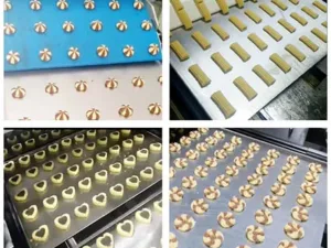 By changing the different cookie molds, the cookie machine forms cookie dough column in different patterns. The length of the cookie bar can be controlled and adjusted on the intelligent PLC touch screen.