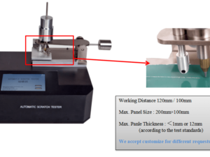 This Scratch Resistant Testing Machine is designed and manufactured in accordance with the requirements of Article 2.10.8.4 of GB4943.1-2011, Article 2.10.8.4 of IEC60950, Article 21.2 of GB4706.1 and Article 21.2 of IEC60335-1. It is suitable for solid insulation of household appliances and similar products. Scratch test on accessible parts or printed boards to ensure that the material has sufficient strength without being pierced by sharp tools.