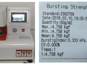 Paper Bursting Strength Tester is fit for products which are packaged by corrugated paper such as electronic instruments, electric ware, hardwares, bike, valise, food, shoe, furniture etc, to test the bursting-resistance strength of paper box; it can also test cloth and synthetic leather.