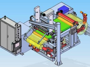 The winding unit is equipped with a pressure roller system and the machine is supplied with two expanding mandrels for the copper foil and two for the paper insulation.