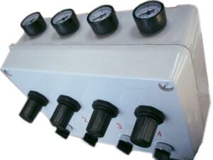 Each spool has a pneumatically controlled hydraulic disc braking system, and the control box is provided with pressure indicators and a wire tension release switch, which allows the wire to run freely for termination. The control box can be postioned anywhere that is convient, for example, on the winding machine.