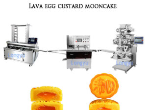 Mooncake&maamoul Production LineLava Custard Moon cakes is a unique breakthrough in the market that combining lava filling with custard moon cake, which bring the traditional moon cake to the next level. The lava custard moon cake can be made by using SV-208A lava custard moon cake production line that consists of SV-208A automatic encrusting machine, stamping machine and tray arranging machine. If you are interested, kindly for more details!
