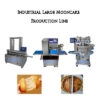 Mooncake&maamoul Production LineFive kernel (五仁, wǔ rén) moon cake is a traditional Cantonese style moon cake with filling consisting of five types of nuts and seeds, coarsely chopped and held together with syrup. A traditional style moon cake that is nutty in flavor and a delight to the taste buds. The traditional five kernel moon cake can be made by using SV-380 five kernel moon cake production line that consists of multi functional encrusting machine, SV-303 stamping machine and SV-302 tray arranging machine.